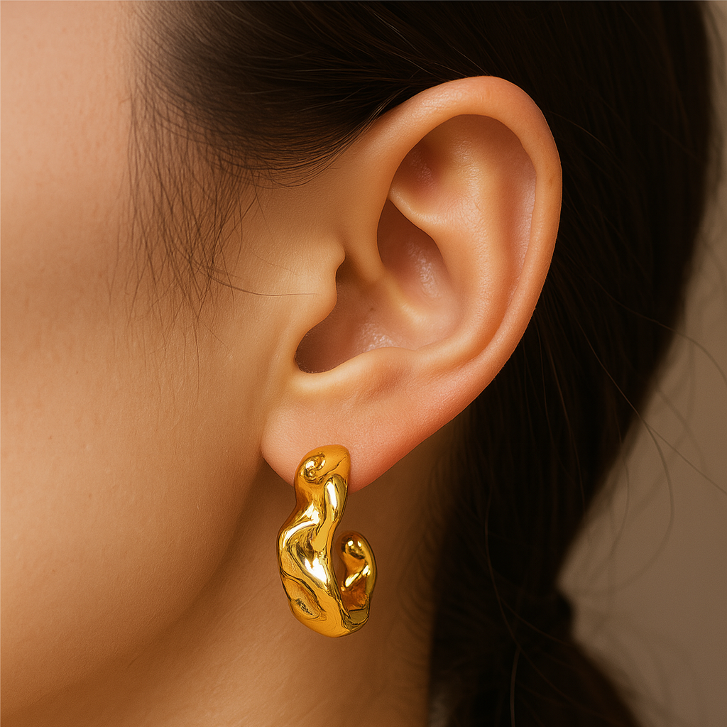 Sculpturales et modernes, les boucles Nova se distinguent par leurs formes organiques et leur éclat doré. Leur silhouette abstraite capte la lumière et accompagne le mouvement avec élégance. Une pièce audacieuse, pensée pour les femmes au style affirmé mais raffiné.