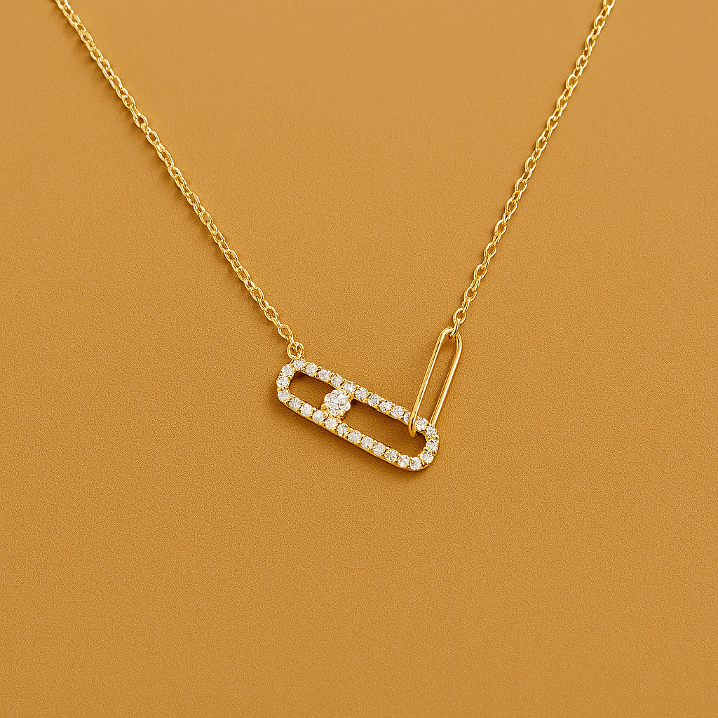 Le collier LIA incarne l'équilibre entre audace et élégance. Son pendentif en forme d'épingle, délicatement orné de zirconiums, exprime une esthétique moderne et sophistiquée. LIA est la pièce parfaite pour sublimer un look quotidien avec une touche originale et assumée.